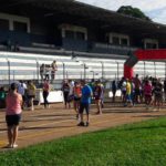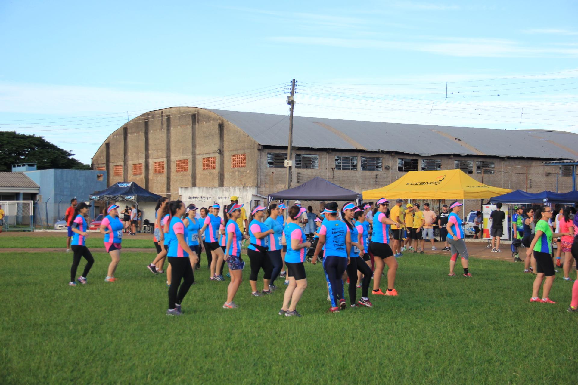 Antes da largada, o professor de dança Paulo Henrique Mariano e o professor de ritmos Lucas Santos no aquecimento das meninas. Além do pós prova com frutas as participantes ainda tiverão orientações de cuidado a saúde com e suplementação com a Farmácia Biofomula e a Empório Equilibrum. “Teremos também a parceria com o pessoal da secretaria de Saúde, fazendo aferição de pressão”, afirmou Dida.
