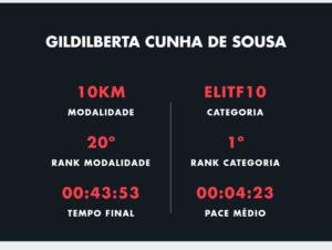 Em Fortaleza -CE, a atleta Gildilberta Cunha de Souza obteve grande resultado e teve seu esforço compensado com o 1º lugar da sua categoria.